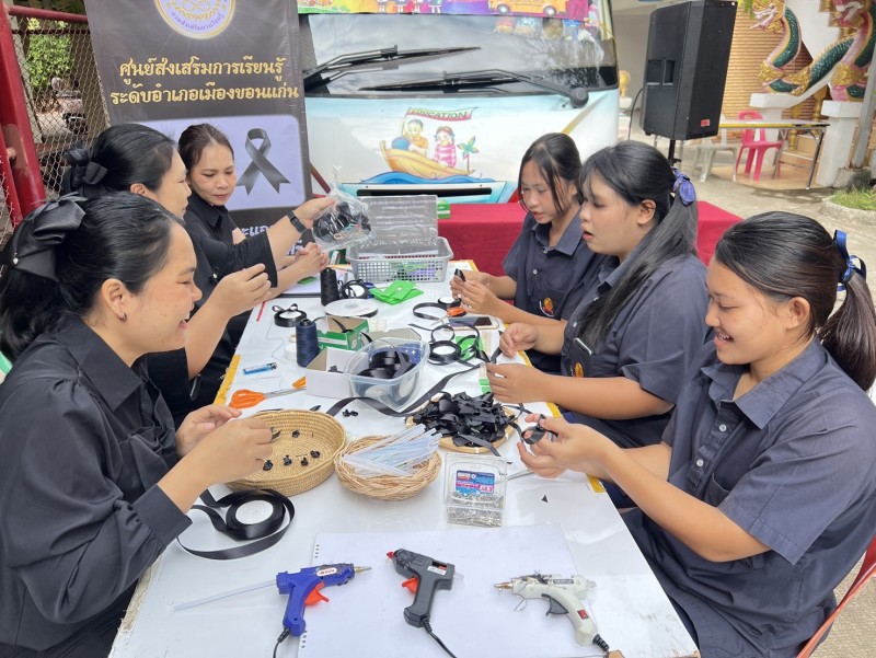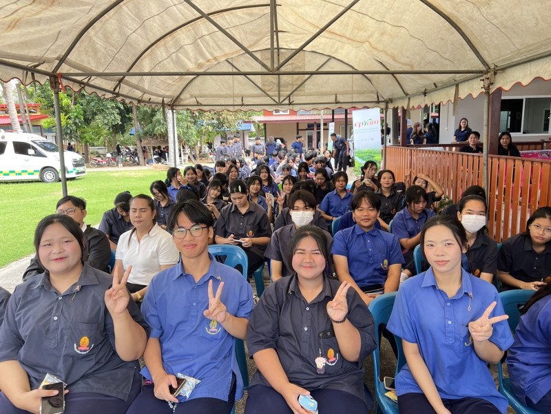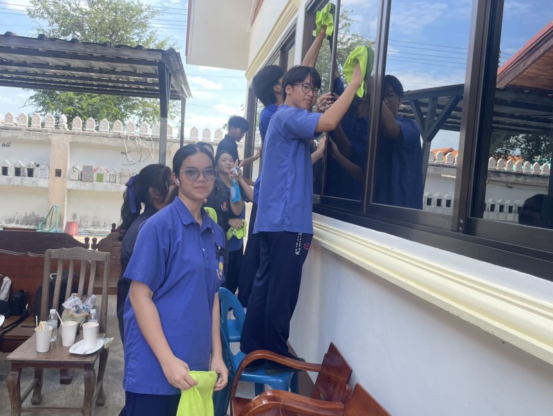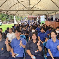 นำเรียนชั้นมัธยมศึกษา ตอนปลาย ม.4-ม.6 ร่วมกันบำเพ็ญประโยชน์ เป็นจิตอาสา ในการพัฒนาชุมชน สังคม และประเทศชาติ เพื่อประชาชนและชุมชน รวมถึงส่งมอบอาหารให้กับกลุ่มเปราะบาง ณ วัดเทพปูรณาราม บ้านหนองบัวดีหมี ตำบลท่าพระ อำเภอเมืองจังหวัดขอนแก่น ในโครงการ ซีพีแรม-ซีพีออลล์-ทรู ปันสุข